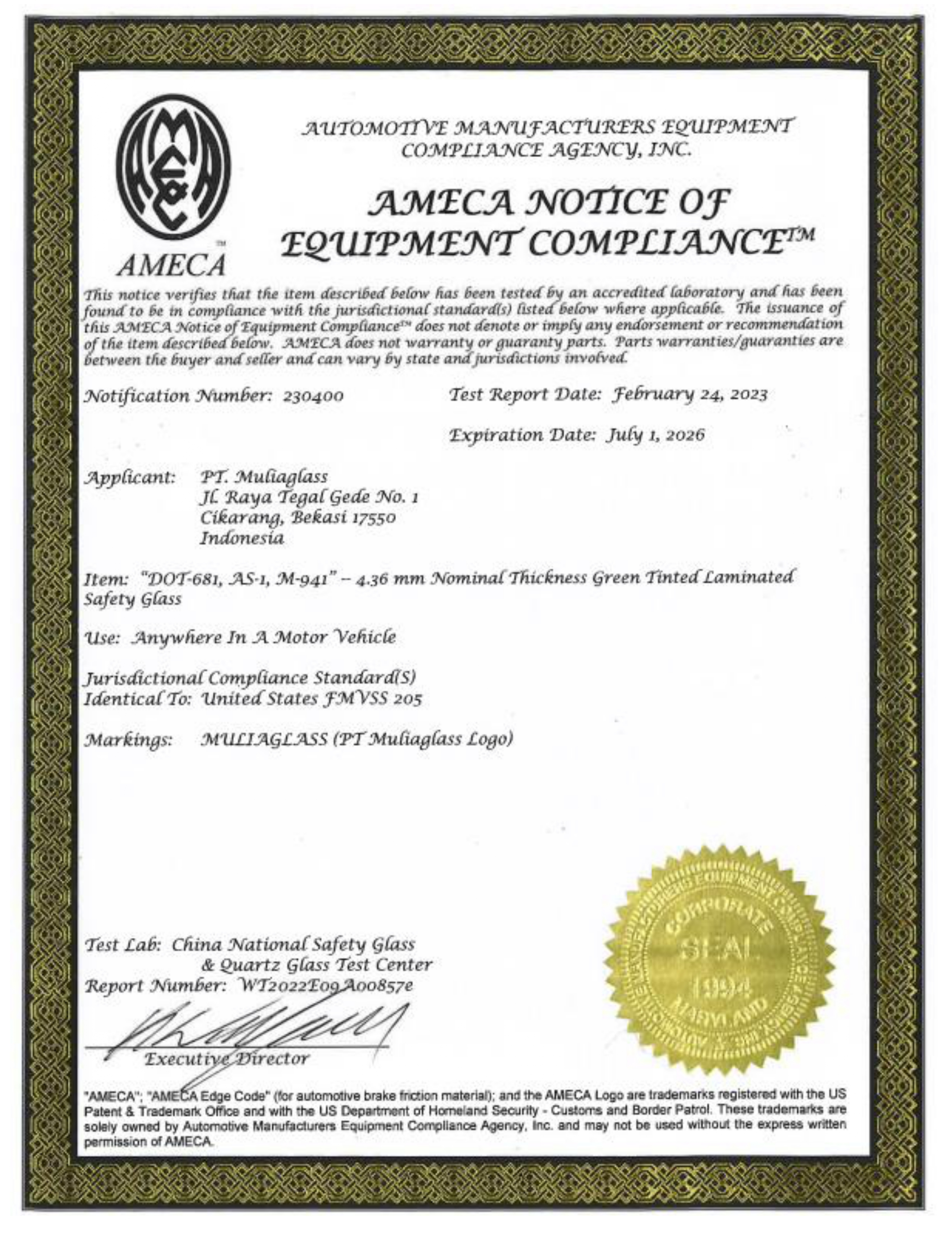 AMECA Notice of Equipment Compliance (4.36 mm)