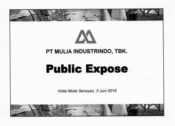 Public Expose tersebut dihadiri oleh publik/masyarakat pasar modal, antara lain pemegang saham dan media dengan agenda pembahasan kinerja Perseroan tahun buku 2015.